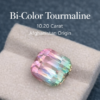 This gemstone features a balanced cushion cut that enhances its brilliance and highlights the natural bi-color transition. The blend of soft pink and fresh green tones creates a visually dynamic appearance, shifting beautifully under different lighting angles.